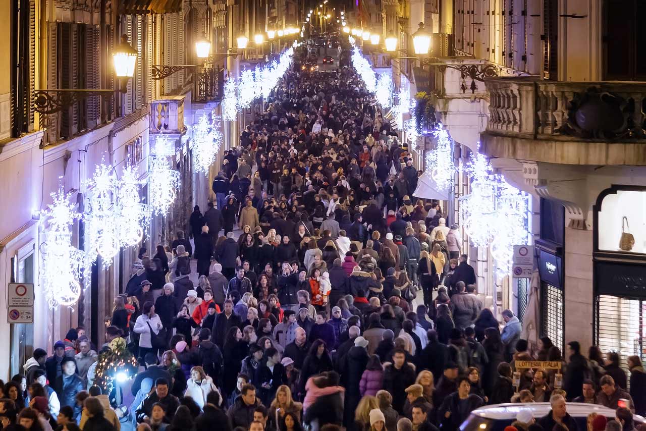 Pendant la période des fêtes, les rue romaines sont joliment décorées et illuminées. Dans le centre historique, vous pourrez voir des décorations sur la Via del Corso, l’artère commerciale de la ville, longue de 1,6 kilomètres, et – entre autres – sur la Via Borgognona, la Via Babuino, la Via Frattina ou la Via Condotti.